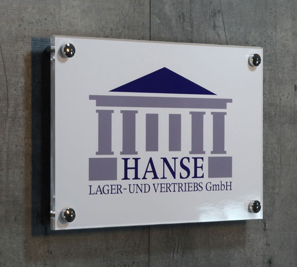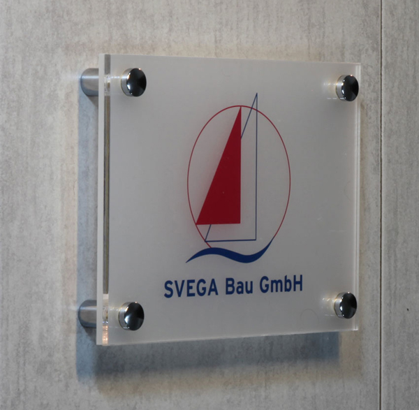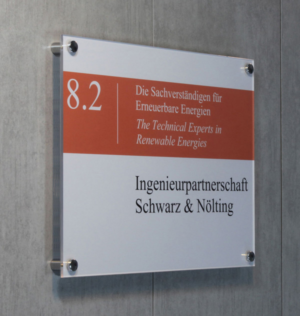 Wir bieten Firmenschilder in verschiedenen Ausführungen, u.a. mit 2 Acrylglas-Platten.